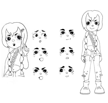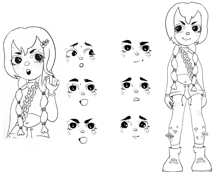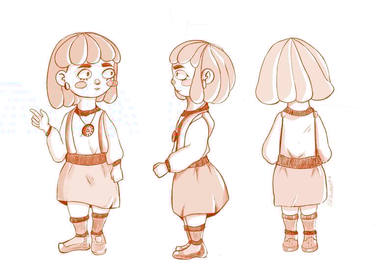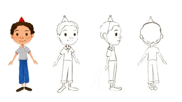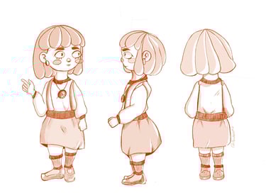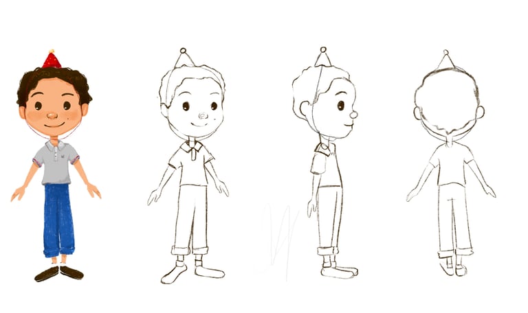Desarrollo de personajes listos para producción: exploraciones, turnarounds, expresiones y acting visual.